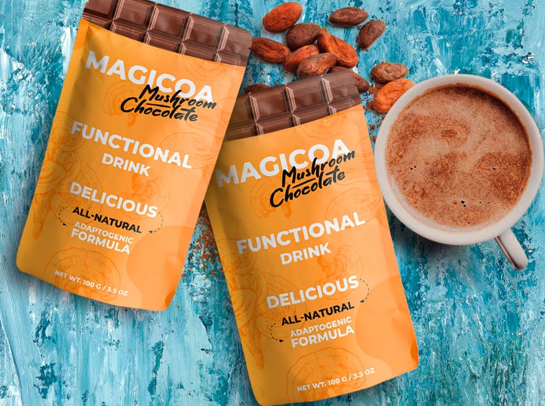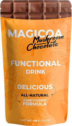 Magicoa este o băutură pe bază de boabe de cacao și ciuperci reishi. De asemenea, conține componente suplimentare care stimulează arderea grăsimilor de 10 ori, stimulând astfel metabolismul lipidelor și carbohidraților și ajutând la curățarea ficatului și a rinichilor.